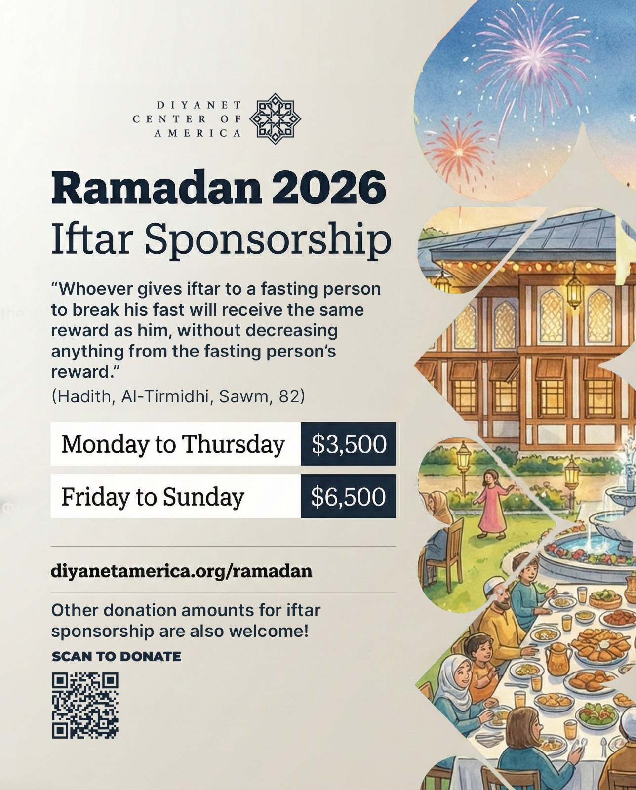 Join us at Diyanet Center of America for a transformative Ramadan experience. Access our complete schedule, Taraweeh programs, and Iftar sponsorship opportunities.